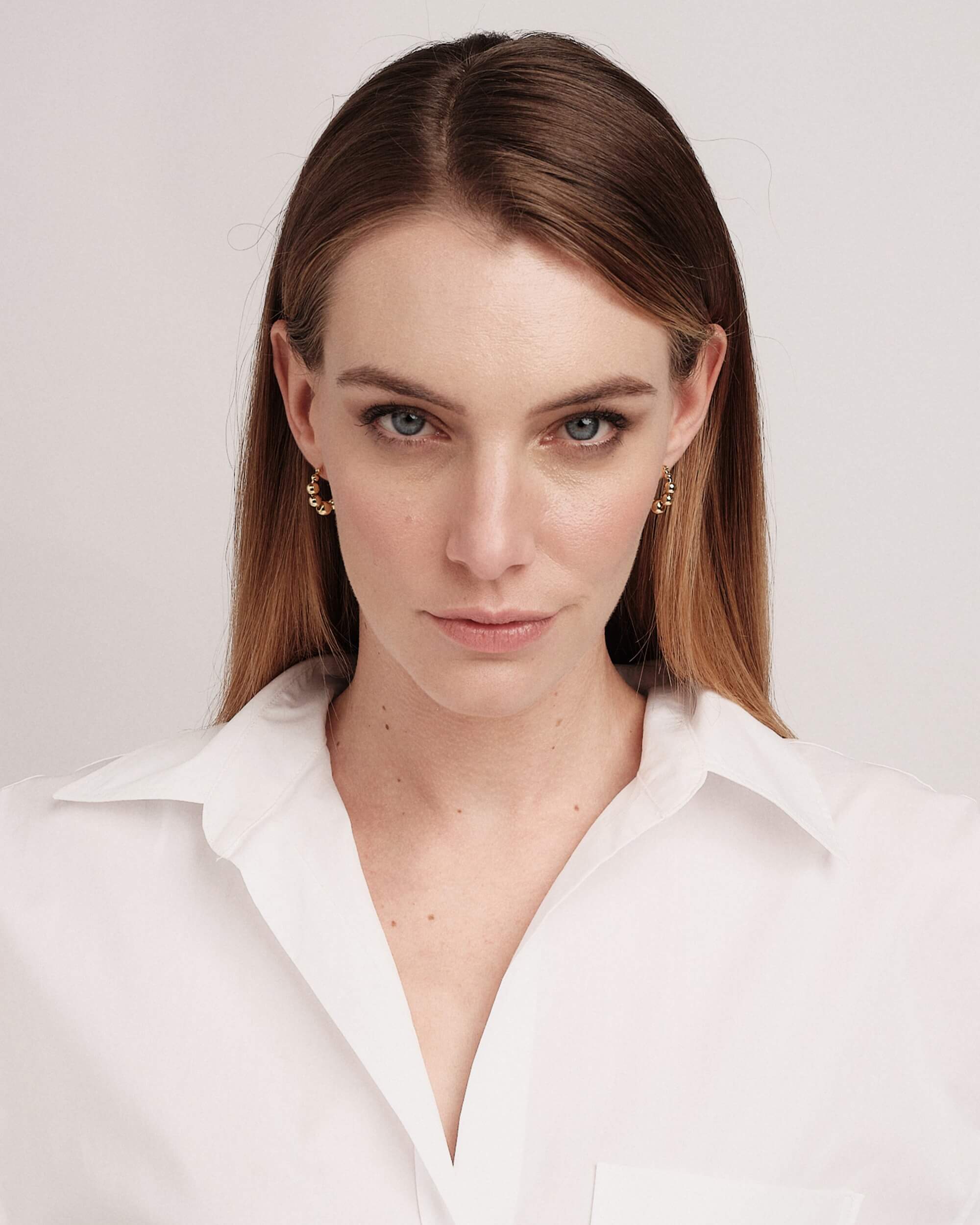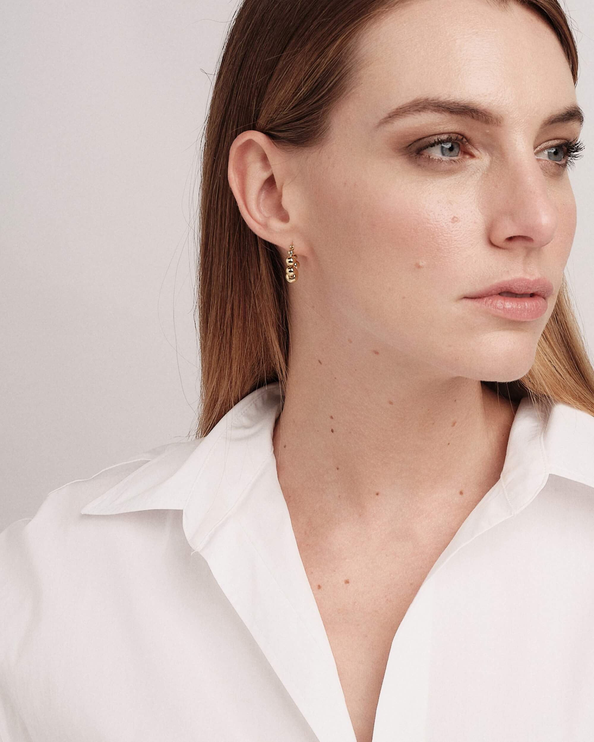Yellow gold plated earring with freshwater pearl ring and pendant.