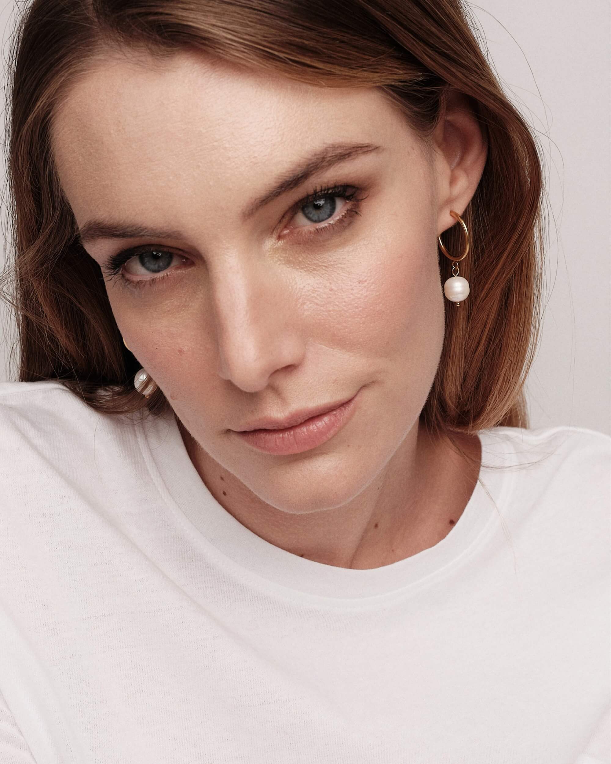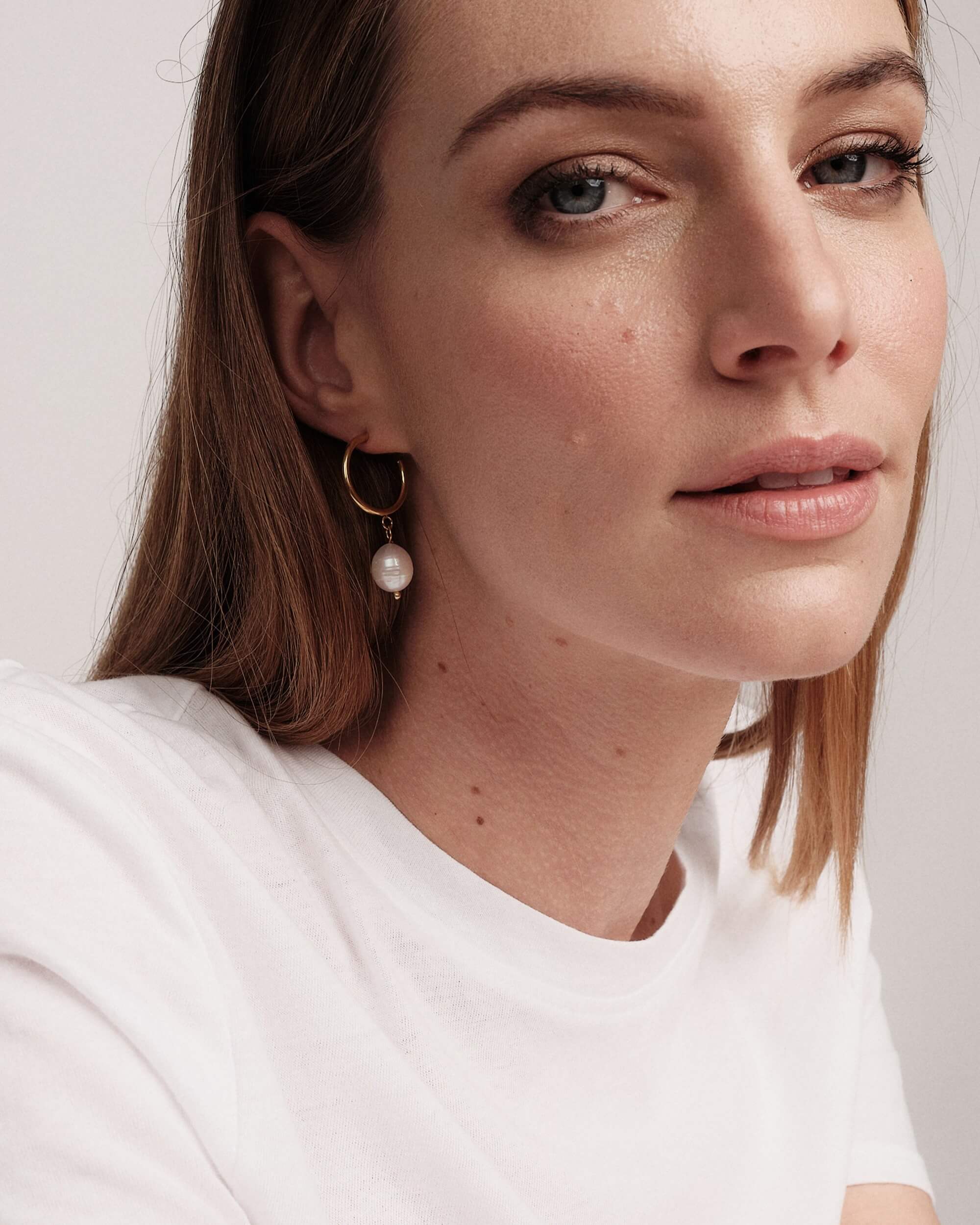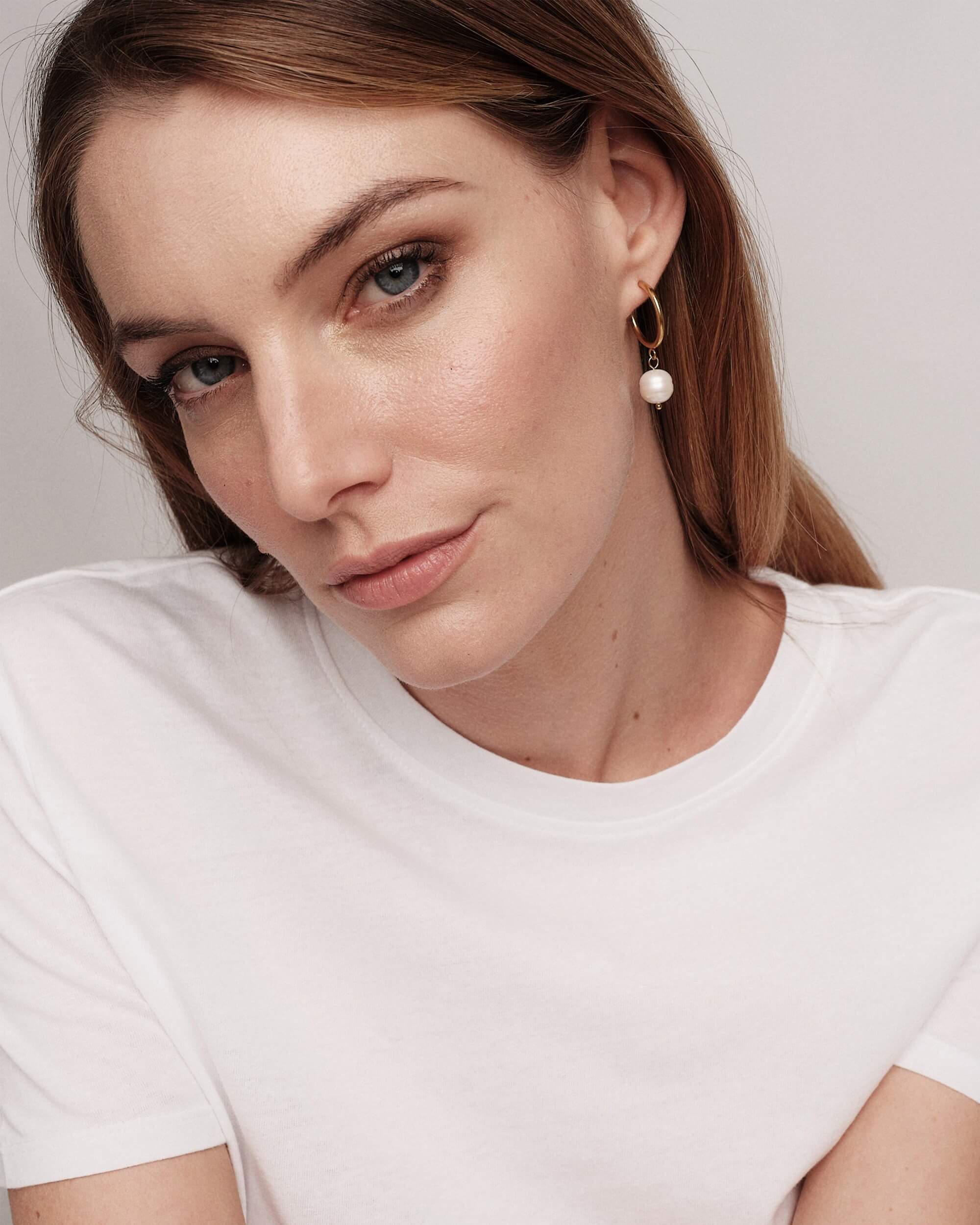Yellow gold plated earring with a flat and shiny circular shape.