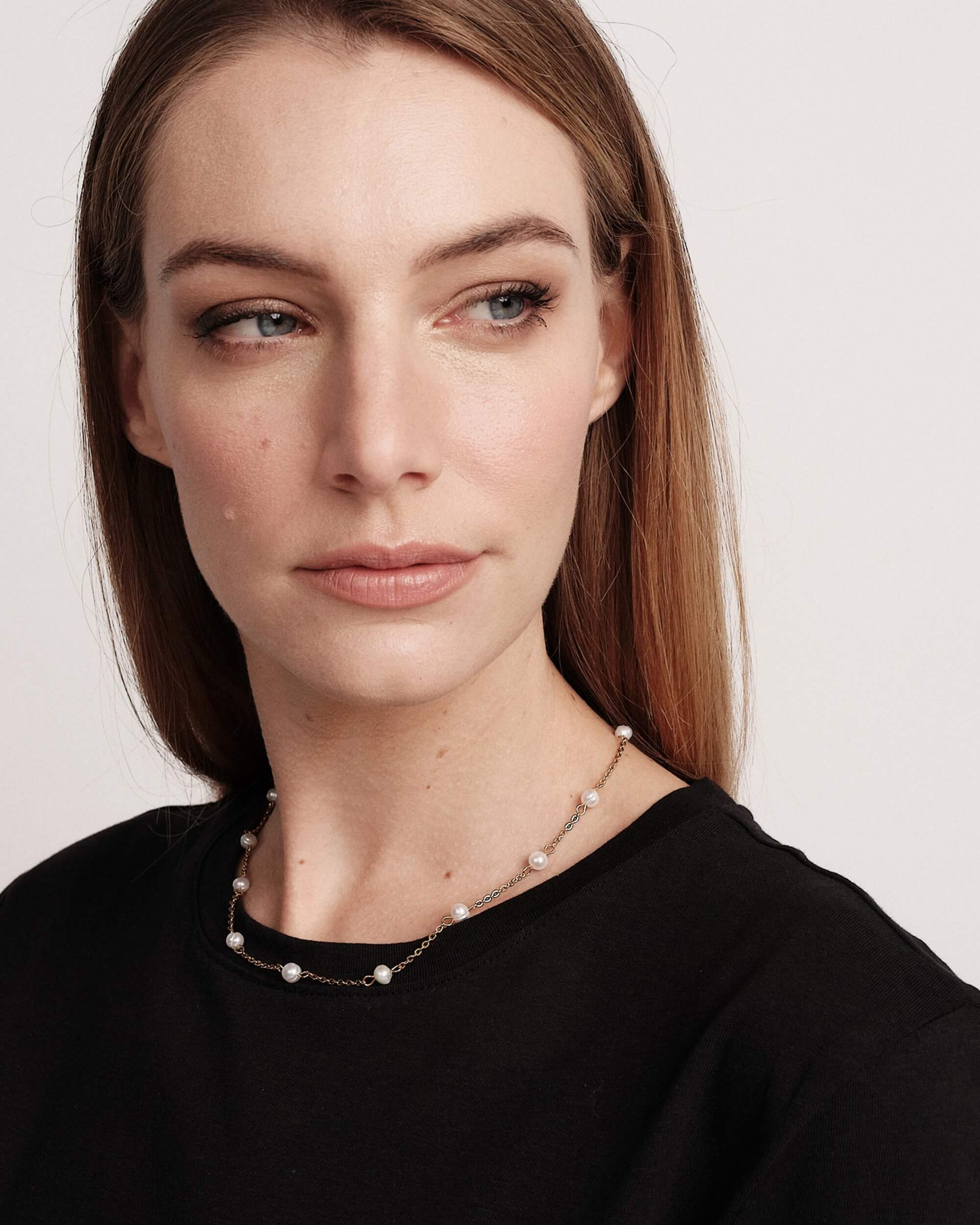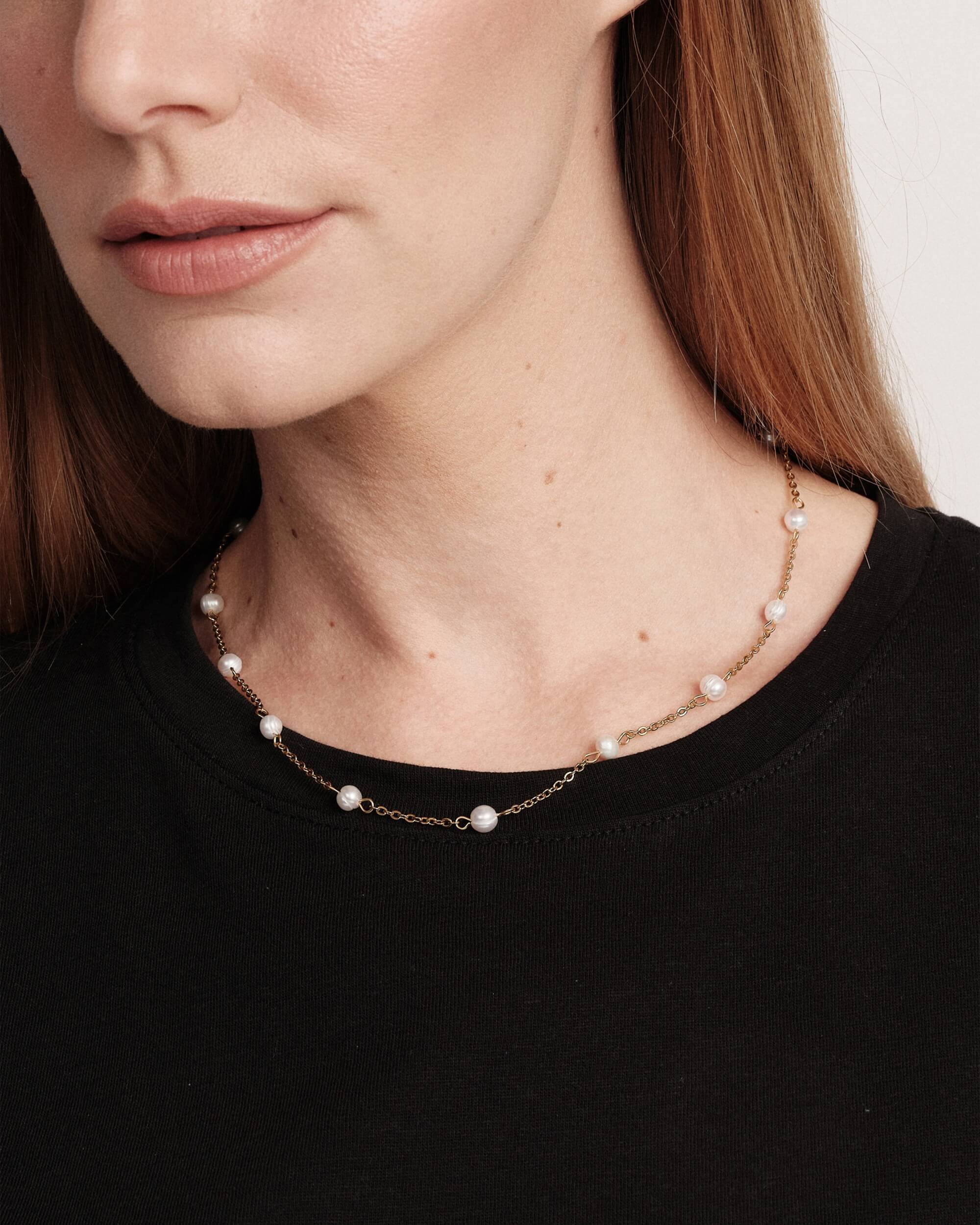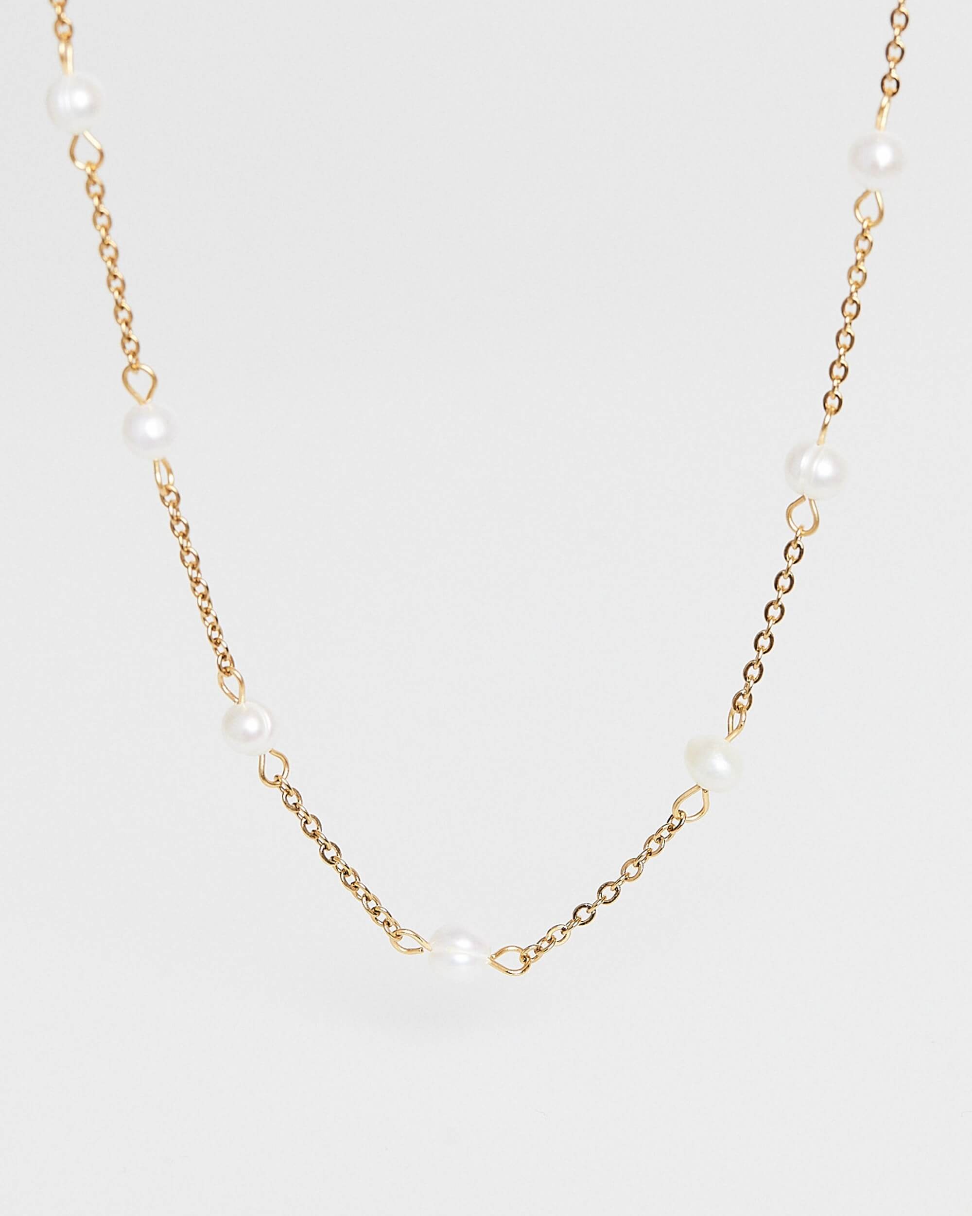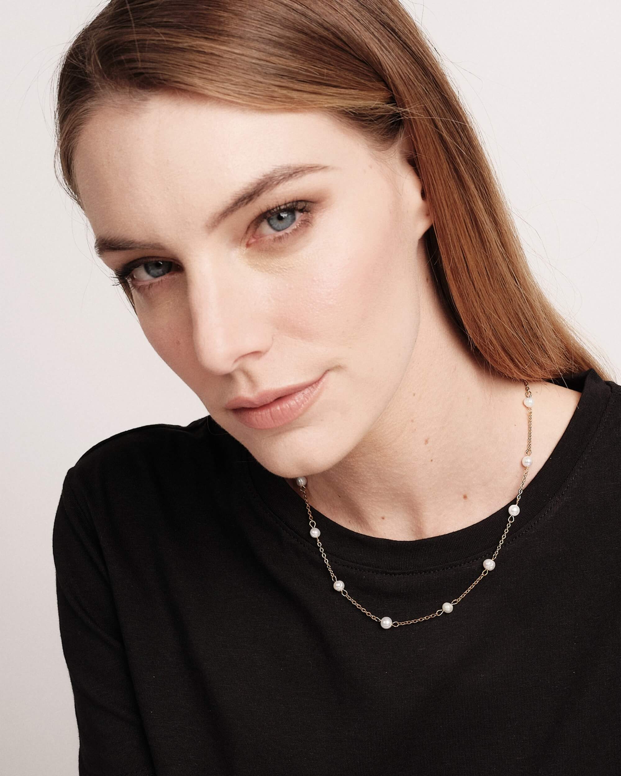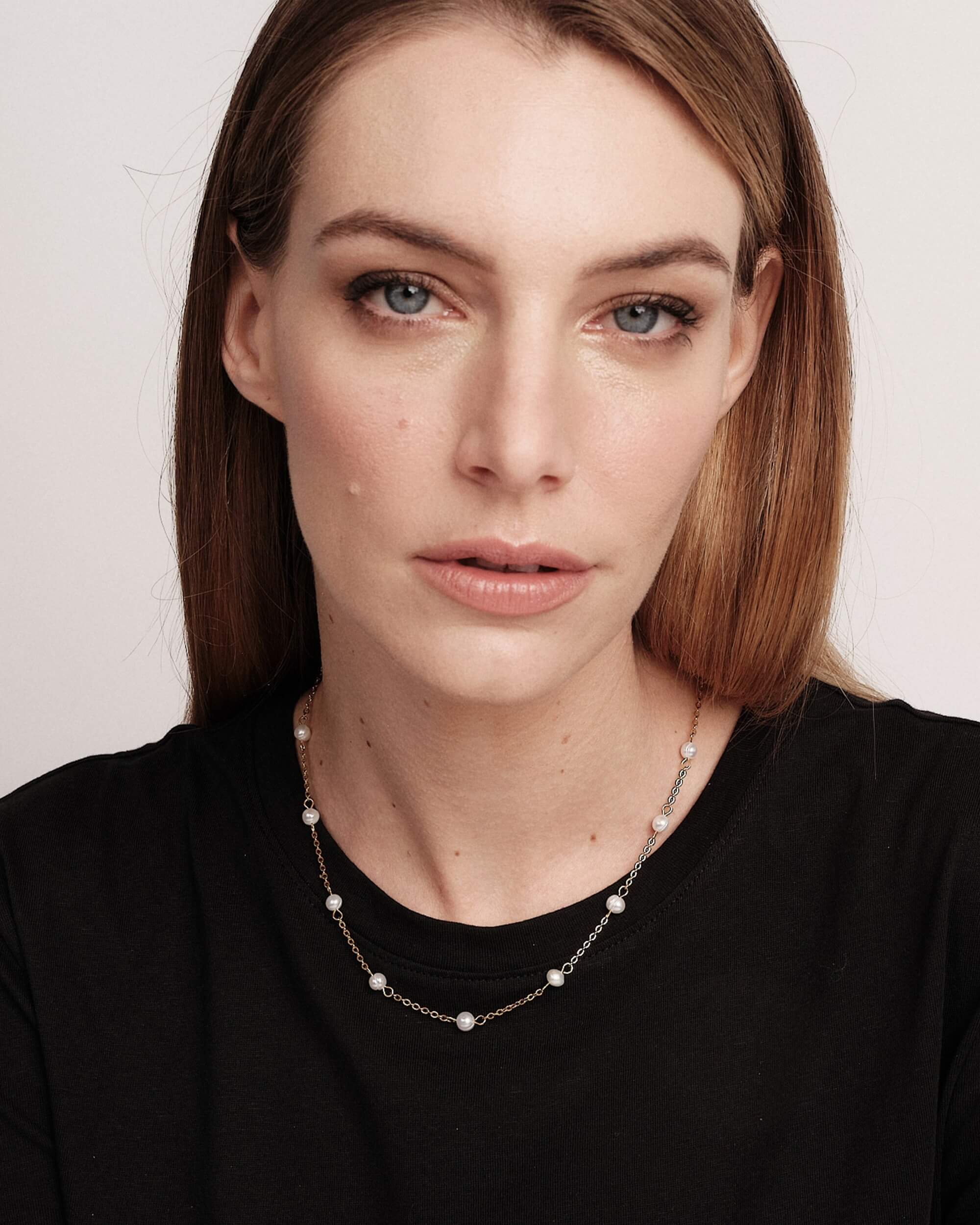 VENERE boasts a high-quality, thin and shiny gold-plated chain that fits every style and pairs perfectly with other jewelry. The chain is embellished with authentic freshwater pearls, spaced approximately 4 cm apart, which gives life to a fresh and dynamic design.